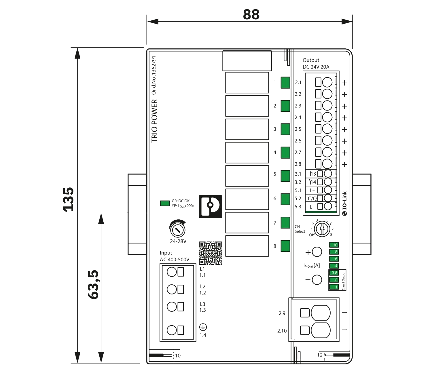 Wirkungsgrad typ. 94,4 % (3x 400 V AC)