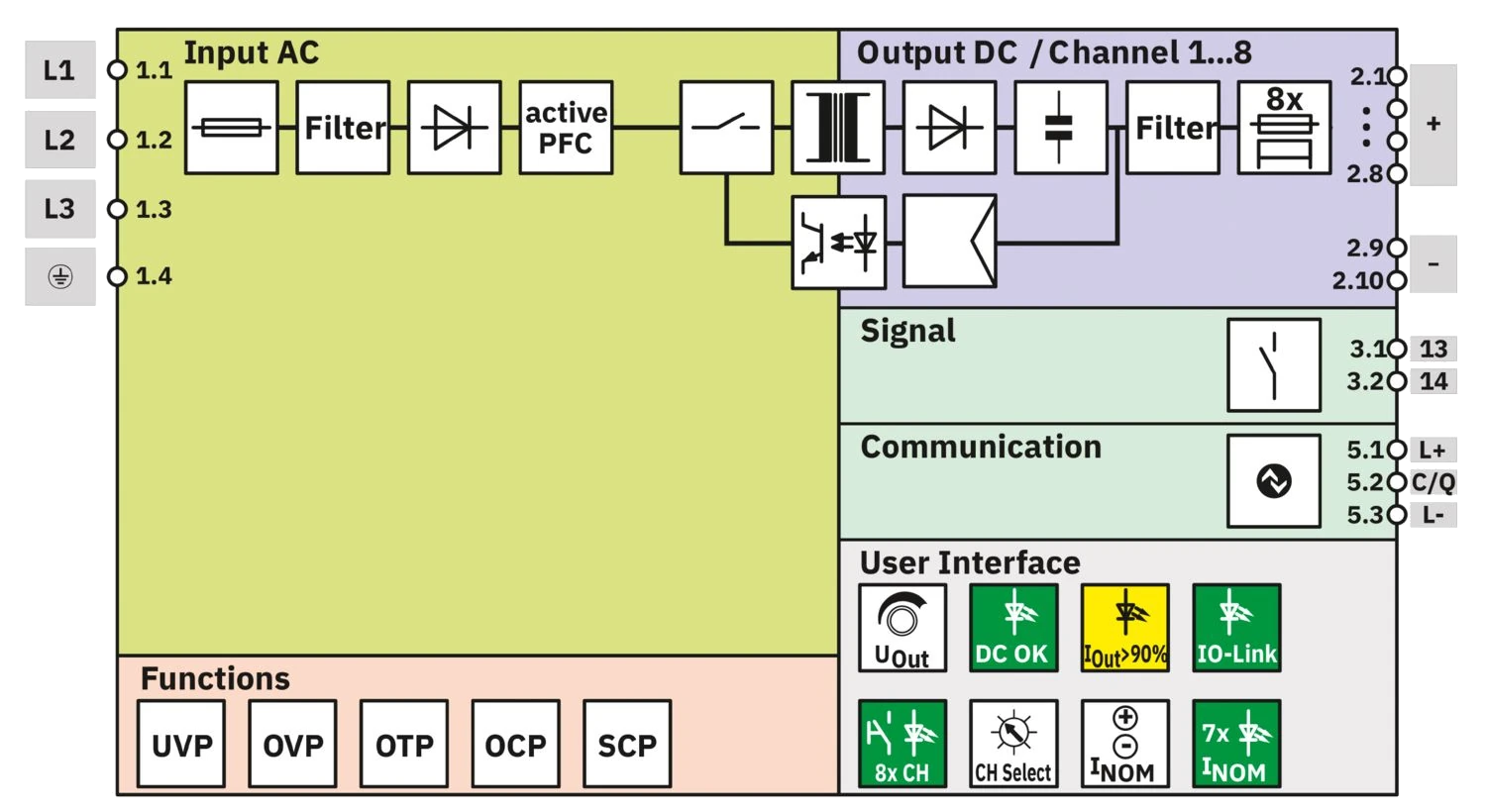 Polkennzeichnung 5.1 (L+), 5.2 (C/Q), 5.3 (L-)